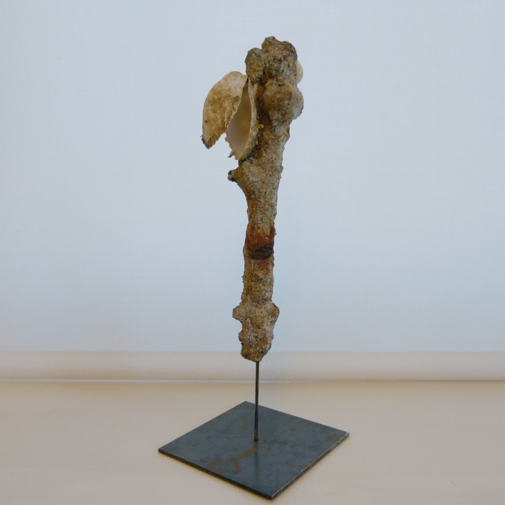 Meine Skulpturen und Material-bilder bestehen, ebenso wie die meisten meiner aktuellen Schmuckstücke, aus Fundstük-ken, die ich in Häfen oder an Stränden aufsammle.